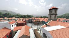 The set's name is La Piazza Realistic Mediterranean Town. It's a pretty extensive city. Here's a 3DL render (I haven't tried Iray yet) overlooking the center. The background hill and sky is part of the set and the lighting is what was comes with the product. It renders quickly in 3DL (1.5 minutes). I did find as I do with all 3DL shaders that I had to reduce specular from 100% on all the surfaces, but that takes less than a minute to do (highlight all the items in the Scene Pane, highlight them all again in surfaces, and set Specular to 0-5%).