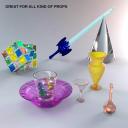 This product is actually not something you will create props with, like the glass statues I used in the promo. It is for the surfaces on any prop, figure etc. you want to use it with. What I did with the statues, I simply added the custom shader to all surfaces of the prop and made my settings. The statues are a prop from another product, originally made of stone You can add to hair, clothing etc. of course too. But it depens on the prop/figure you are using. The shader does not change the UV or geometry.