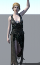No v-tear detected. Whymsy seemed to hang reasonably well in the poses I tried that weren't out there; I didn't try the morph sliders (do those even work in autofitted stuff?). Romance dress had some weird tearing in the arms in a pose with the arms up, but no weird crotch-clinging. Goldberry dress below.