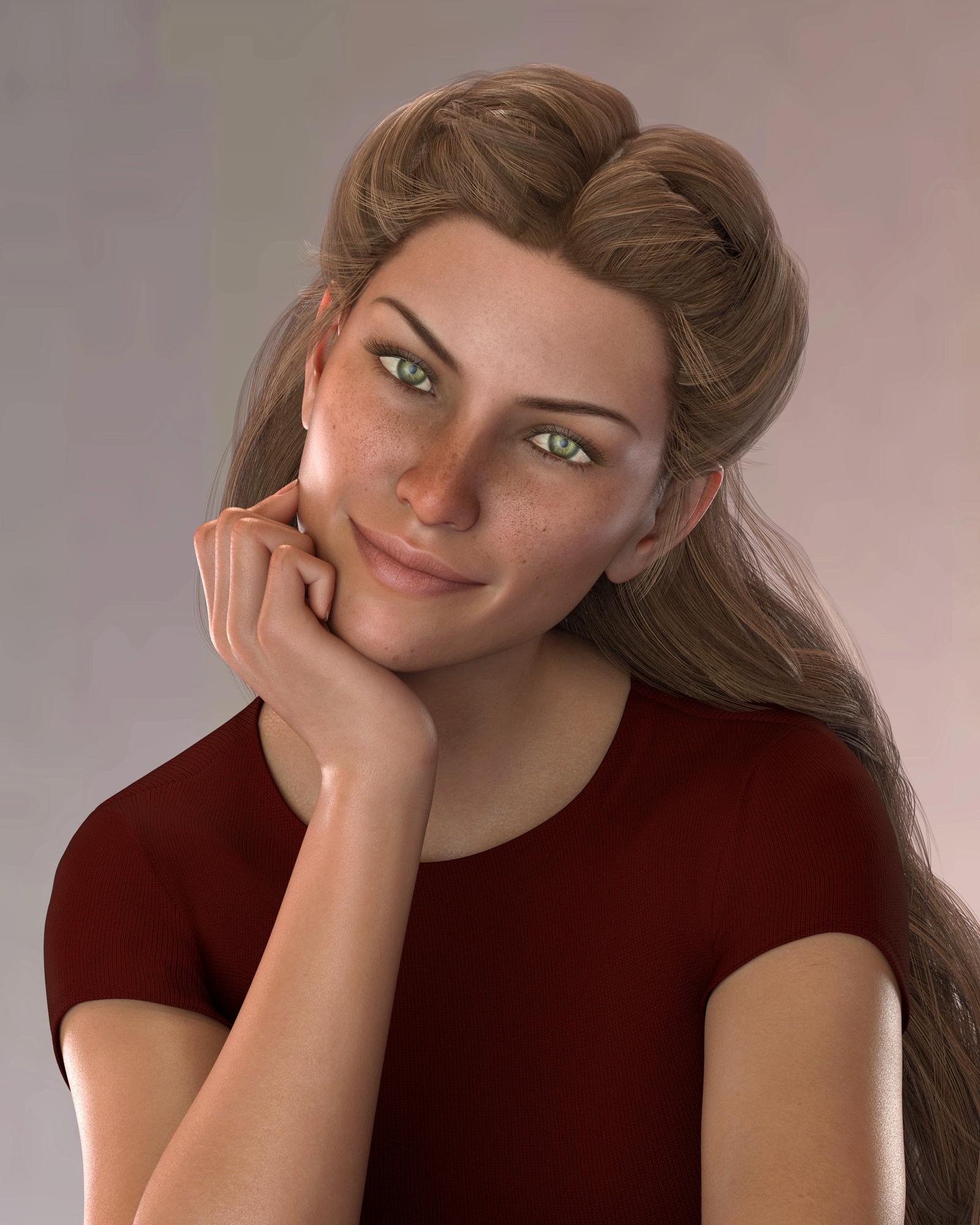 Here is a combination of Brita, Frida, and Girl 7 (and a bunch of individual morphs dialed in by the randomizer). I transferred the whole shape as a single morph. The skin is Haven for Girl 7 with surface changes. The eyes were borrowed from V8. The hair is Reyna.