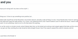 I do not know what is going on in your life but I hope it is manageable and the result is postive for you. I do not mean to inconvenience you. Can you please give us an update with how you are doing and where this project is? Can we look forward to another script to test in the near future?