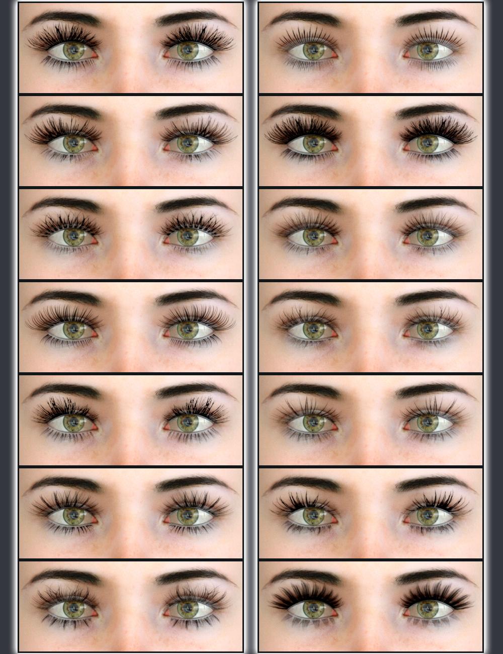 This package contains morphs, colors and styles that can be applied to the upper and lower lashes individually.