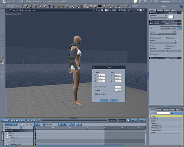 b) using the grid is one thing if your action takes place in the grid. I have one animation which takes place in the Dream Home Bathroom which is located far outside the Carrara standard 3D world. I'm not sure if moving the Carrara 3D-world will mix the translation up, maybe I should try this.