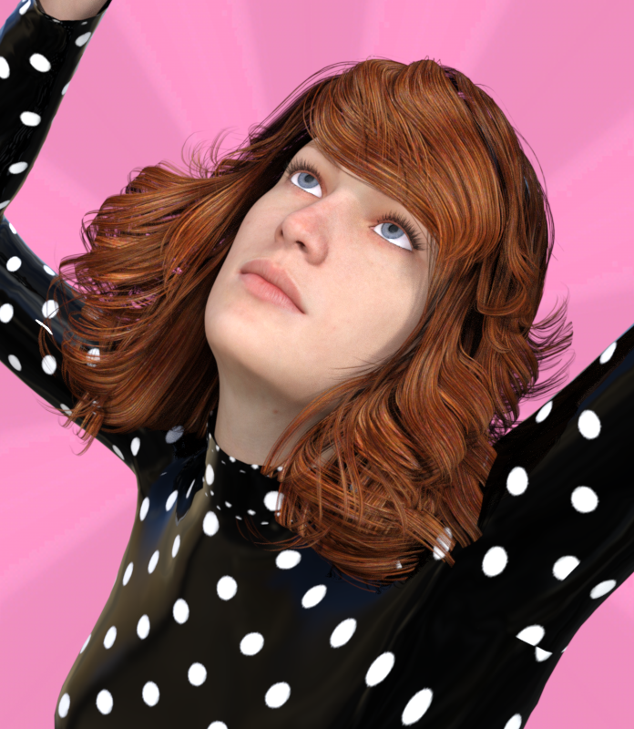 I've played around a bit more with push modifiers. You can apply them to figures and hair. This first image shows a G2F with hair that's embedded into her left arm: