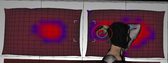 21. Repeat step 19 for the right pillow, but mostly paint along the edges with the Alt key held down. You want the portion where the arm is located to remain sunked in, so you will want to see red in those areas.