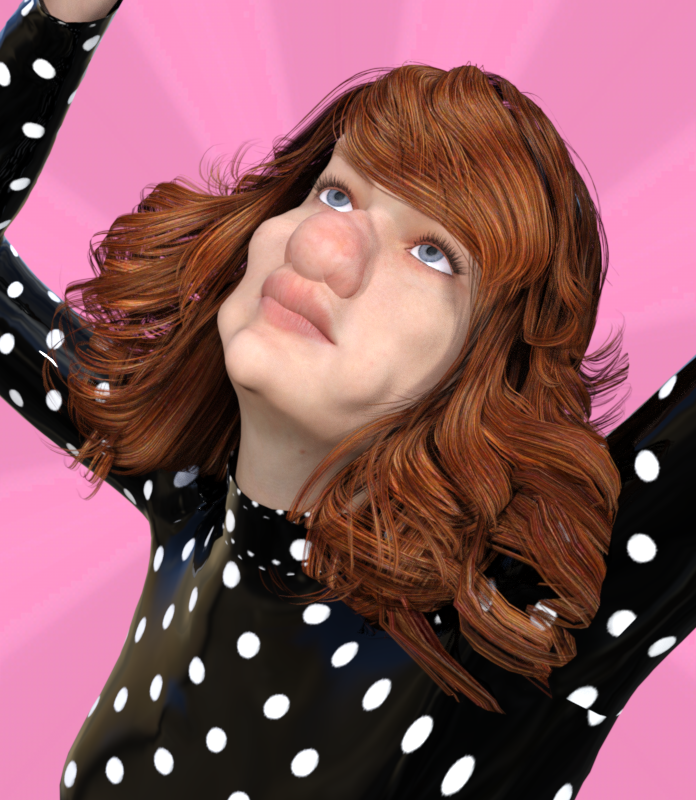 After applying push modifiers to the figure and the hair, and painting their respective maps, you get this. The hair has been pulled away from the arm and the face...well, you can see it's changed a lot.