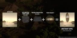 Plus setup is simple. Just open the scene file, load your object and position the water disturbance prop and volumetric light box accordingly (you "position" your object by simply rotating camera as needed). Press render and in seconds, presto! Instant epic. (User Guide included).