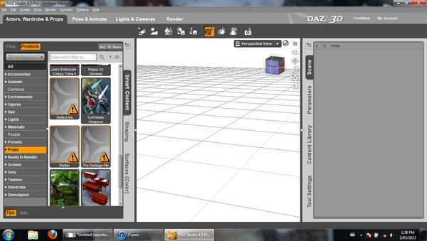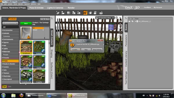3. The Garbage Pile, when selected - loads the scene perfectly, and with textures! Yet it asks for the textures, otherwise the next example happens.