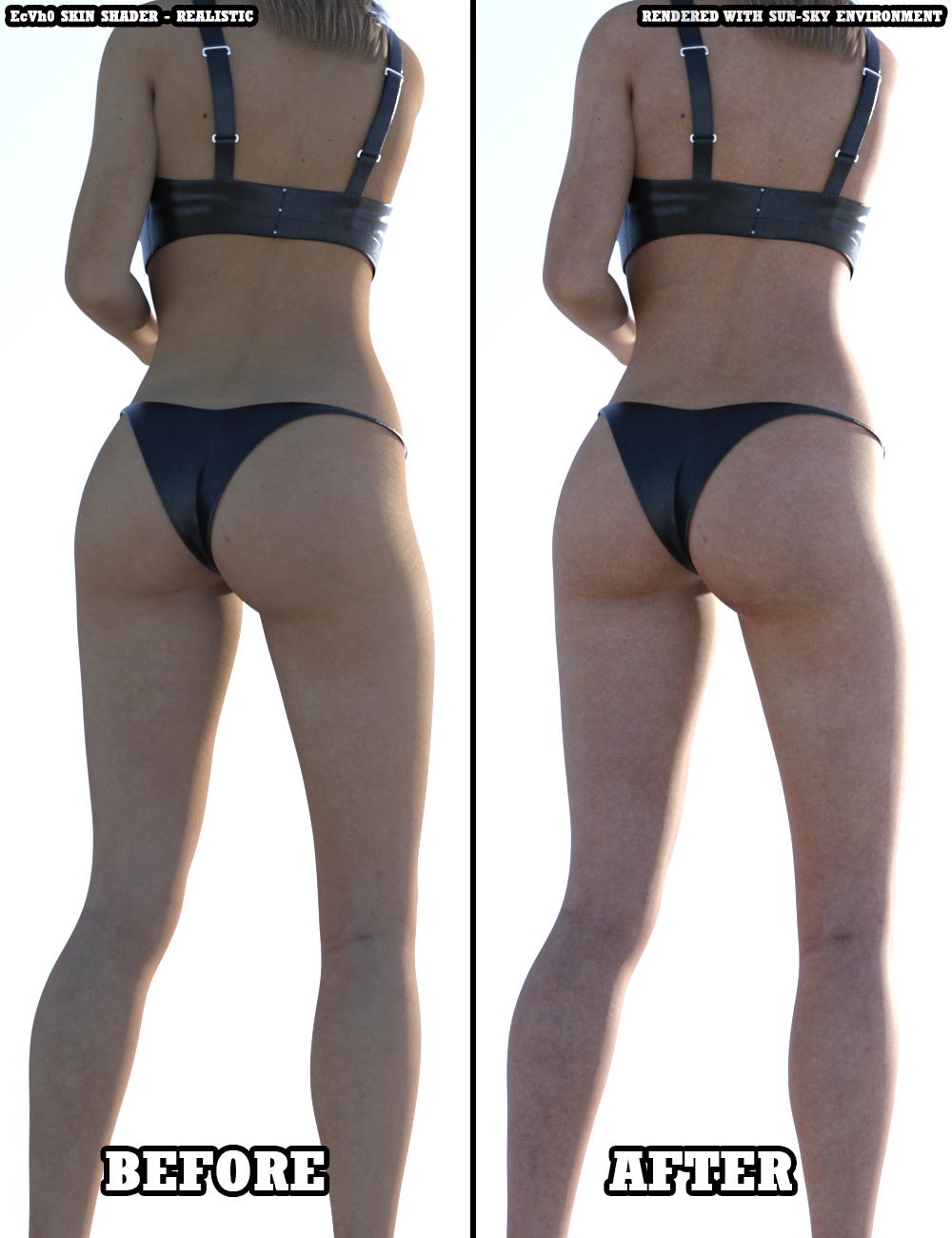 Before - after renders look confusing to me. Since images are split in half, it looks like "EcVh0 skin shader - realistic" is for before half.