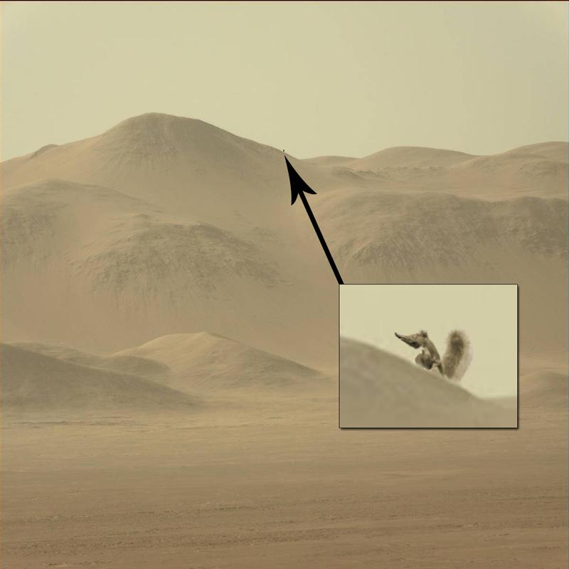 What's that little black dot in the middle along the ridge? A Martian? If so, it looks like the shape of a Schmoo. https://en.wikipedia.org/wiki/Shmoo