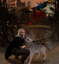 OK, Wolf with woman was my first attempt using only 3 zones, head, body, and belly/legs. Not a good effect, but he's seated in the reeds, so it's OK.