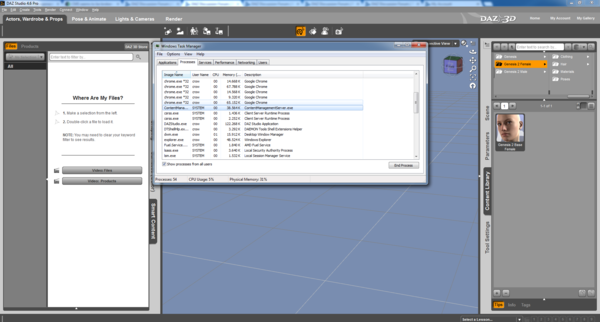 i uninstalled my windows,and installed all the programs again...also DAZ3D ofcourse.Downloaded daz install manager to start from scratch,installed it again and.....this time even the content manager doesnt show up on my processes...i can consider myself as a new Daz3d user but i've been using cg softwares since forever and never saw such a crappy buggy hard to get used yo software like Daz...The help documents and such are not even up to date for the latest version...And i cant understand how they change the user interface in major way from one version to the other...uhhhhhhhh...so it seems like the content manager is insisting on not working even if i activate it from its location in C:/daz folder nor from start menu.Giving my best regards to the developers <3</p>