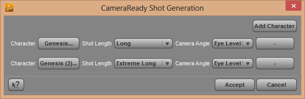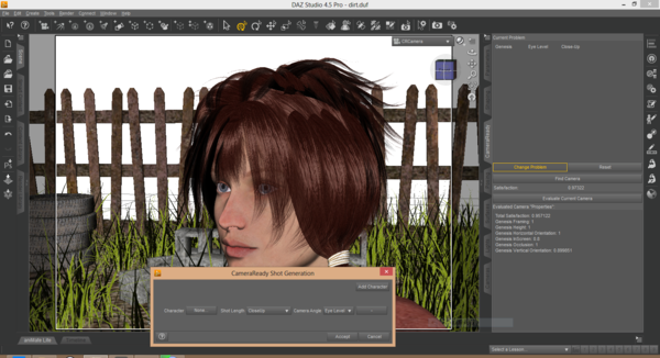 CameraReady for DAZ Studio (temporary name) is a plugin for DAZ Studio aimed at creating beautiful shots by defining photographics properties on the characters in the scene. For example, do you want to have a close-up on someone's face? Just tell the plugin and it will calculate the correct camera position for achieving this. You can also define multiple characters in the scene (even one with a close-up and one with a medium shots).