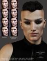 There are 3 skin sets to choose from: Human, Fantasy and Fantasy Colors.  Each skin collection includes 3 Brows, No Brow, and a Darkened Material set.  There are 4 Human Eye Materials, 4 Fantasy Materials and a Darkened Eye Material as well as 4 Eyelash Color Materials for him.