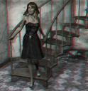 Thanks for the 3D camera advice. Parenting the left and right cameras to the center camera worked in DAZ Studio. I had experimented with the anaglyph technique before, but found placing the cameras very difficult. This technique makes it so easy! Here are a couple I just tried. The 3D effect is not real strong. Maybe I should experiment with placing the cameras a little further apart.