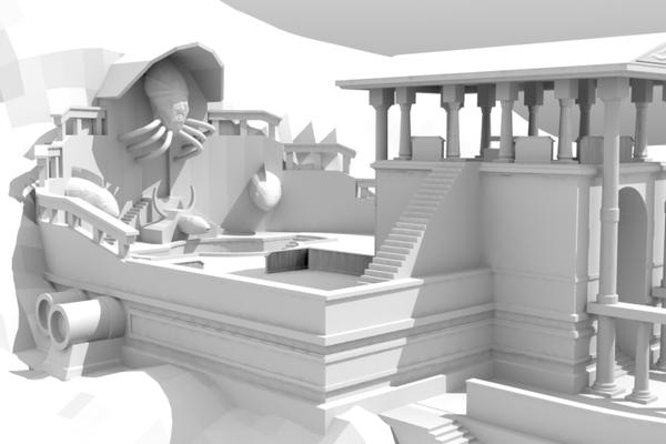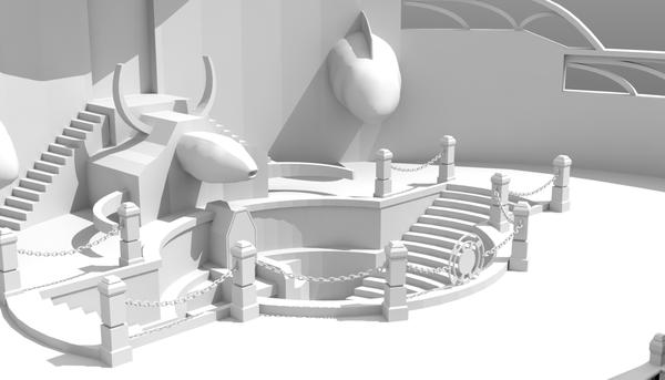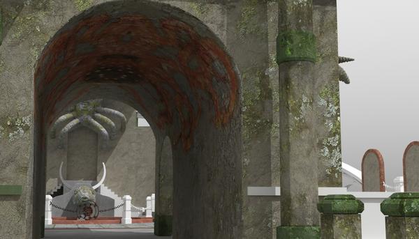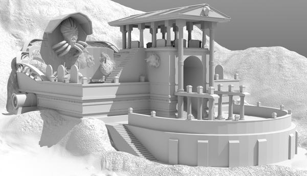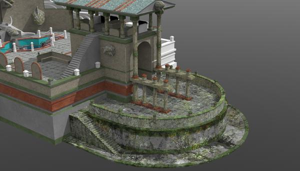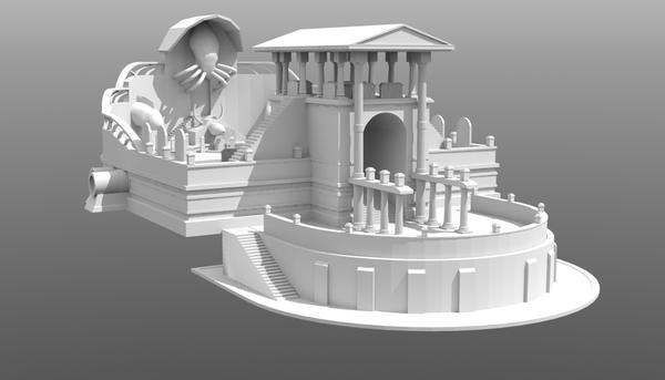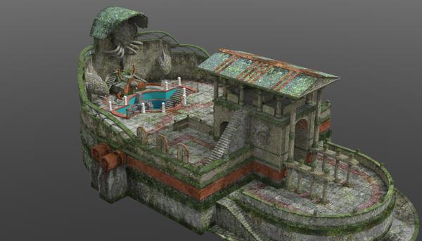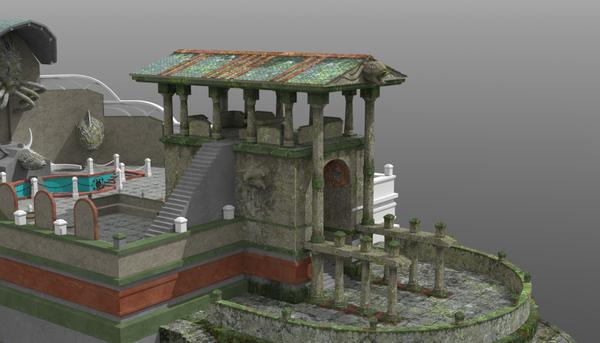 The idea behind the drowning pool was the following: An old aquatic temple where victims are sacrificed (drowned) to get in contact with the gods of the sea.