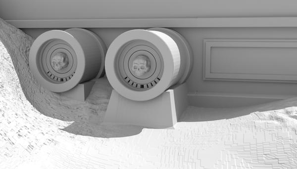 Back in germany again. Everything is UVed now and i have added a few more stone heads to the set. Next step is to start texturing...