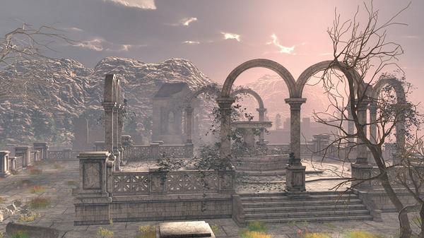 I've taken Curator Aquarum into Vue and it looks good. Added some further ruins behind and a bit of rubble to suggest a deserted city fallen down over time. I've wanted to use this atmosphere (Distant Drummer by Robin Kleb) for a long time but didn't have the right scene but it worked here with a bit of sun moving.