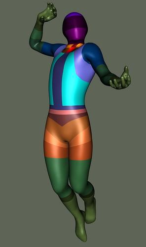 I added a few more material zones to the suit to give a "Tank Top" option, topper for the thigh boots material zone, got the eye holes, ear holes and created a "Colossal Boy mask shape for the main mask area. Learned to work with Edge Loops and Crease Edges a bit more. Still need to study up on those more but got the job done very well I think.