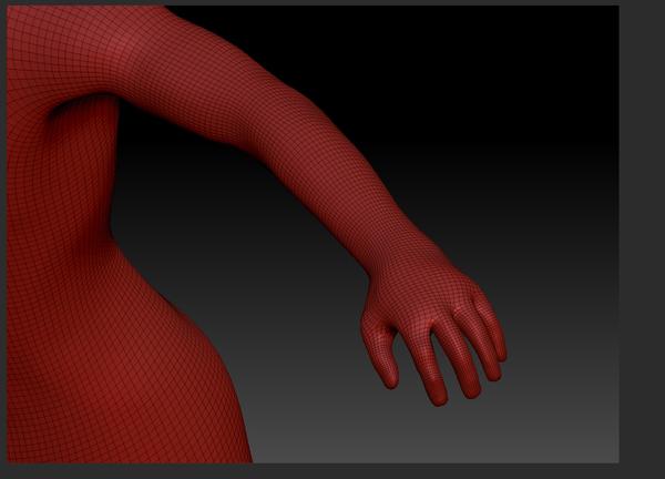 Read up on some tutorials. Not enough info though to finish up the fingers. Anyone know how to make fingers in ZBrush using the Dynamesh? I got the rest done. Kinda fun... except for the thumbs. Cussed my way through that part. But the other fingers are just too skinny so there is not way that pulling out the mesh and remeshing it is going to be good enough. I tried and it was a mess...