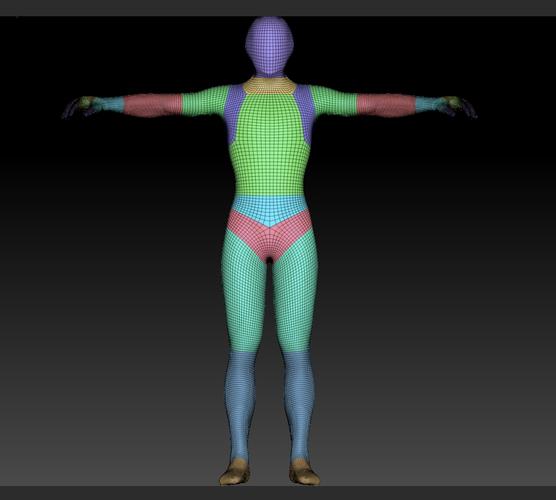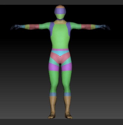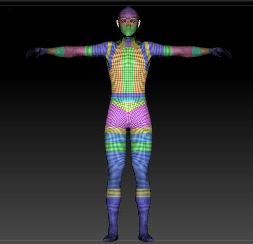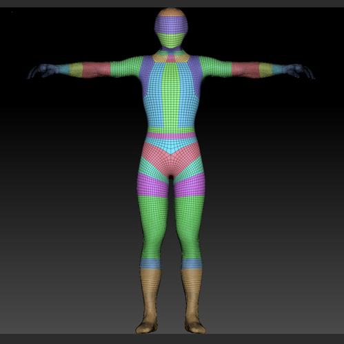 Well, got it done. Now I have a basic suit to build clothing and what not out of. The fit is not super tight but it's useable as it is for the most part. I will probably take it into ZBrush and get it fitted better but glad I got the UV's done and sorted out. Poses just fine too! :-)