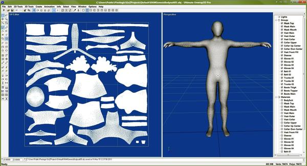 6. Open in UVMapper (free program, totally awesome). Now you can select each group that was created by hitting Ctrl-G (select by group) then assign to a material. Save the updated object.