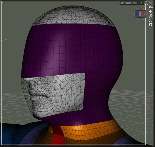 Well, I think I have as many zones as I dare attempt on my first go at all this. I know the mask looks funky but with the poly's being as mid range as they are there really isn't a whole lot more I can add to it without looking like lego blocks. :gulp: