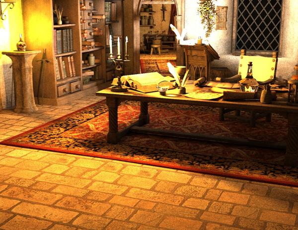 Ok--I took the surfaces for all the candle flames in Opus Magnus and made them light sources. They are mighty bright, so that may not be a good idea, but I like the effect. The flames were the only light source I used--adding an area light would probably help the glowing walls and such...I let this go for about 2 hours: