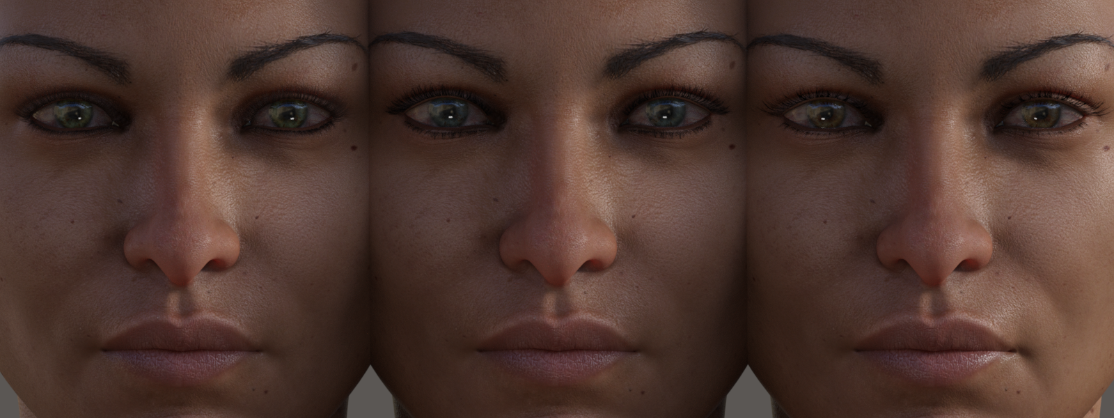 Mate, your skins and face morphs are enough for me, tbh. Just keep on giving us that, and she's all right. I tried Lainey HD eyelashes and Great Lashes for Genesis 8 Female(s) on Benita as options. Eyelashes from left to right: Lainey HD (natural), Victoria 8 eyelashes (Benita), Great Lashes for G8F (brown 01). Top to bottom: Lainey HD (natural), Victoria 8 eyelashes (Benita), Great Lashes for G8F (brown 01).
