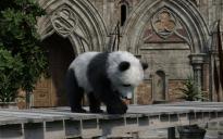 Ursus Mastronadi Cuteous (common name, the Enchanted Forest Minature Bear) running amok in Sirenopolis. The background is Jack Tomalin's Balneae, with the walkway and trees kit bashed from some other sets.