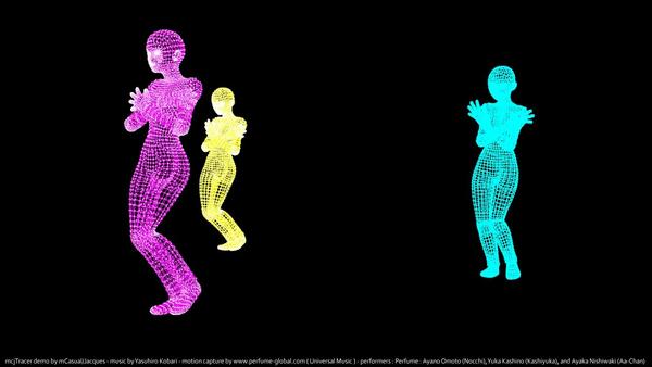 over here ----> 3 Aiko3LE displayed as lines and dots ( 210000 ! ) dancing to Perfume's music