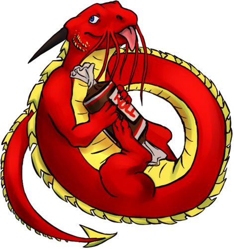 A cute picture a friend showed me of his dragon-self clutching a giant tootsie roll =3