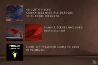Lush and sultry, yet epic and grand.  The Flying Fabric Collection includes 40 organic free-flowing cloth pieces for use as set pieces in your scenes. These props can be used for a wide array of applications, including; capes, sheets, dress and gown extensions, scarves, shawls, and much more. Simply load a prop into your scene and position/rotate it as desired. Load as many cloth pieces as you like, and combine them to form unique shapes.