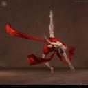 Probably too late, but the first one would work better as a promo if the cloth was a different color. Blue or green, less gauzy, something that contrasted more sharply with both the figure and the background. (Actually, that UV Map image would be perfect, if it were an actual shader with texture.)