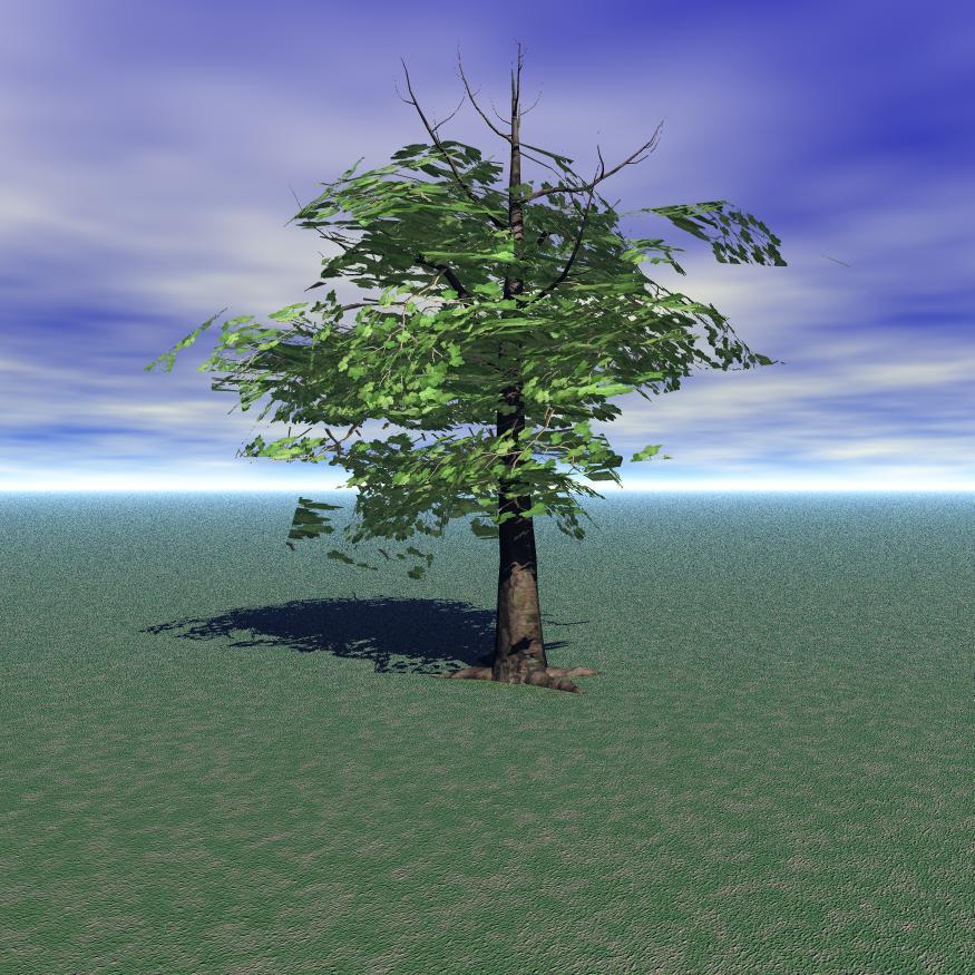 And then I struggled with Arboro to get a similar look. But it was very difficult to get a similar amount of leaves. And the branches refuse to start higher than the split in the trunk, so you cannot really see it. I also included a view of how it looks in Arbaro.