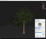 Anyway, here is my Forester Pro light example. I could not get more leaves on the tree. There is a limit of 200 'items'; maybe only in the free version. Anyway, that is far too limited for my tree here. There is also a split trunk. but just as with Arbaro, I could not get it to be visible (easily enough to keep working until I had it). I also add the view of the software. Somehow, it did slow down Bryce very extensively in the first attempt. Only after re-starting Bryce, rendering was anywhere near acceptable for me (I don't mind a couple of nights of rendering for one scene; I just either stop rendering when I want to do other things or let it slow down my computer).