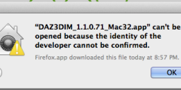 • I'm a newbie attempting to install Daz3D for the first time on my Mac running OS 10.9.5. I downloaded the Daz Install Manager first, as recommended, but when I try to install it I get the error message window attached below. Any suggestions? Thanks.