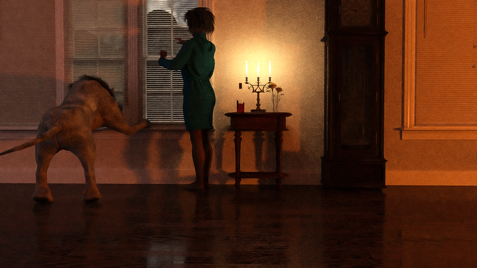 OK, since there is a lion in a house I will add a mouse & naked mole in a barber shop.