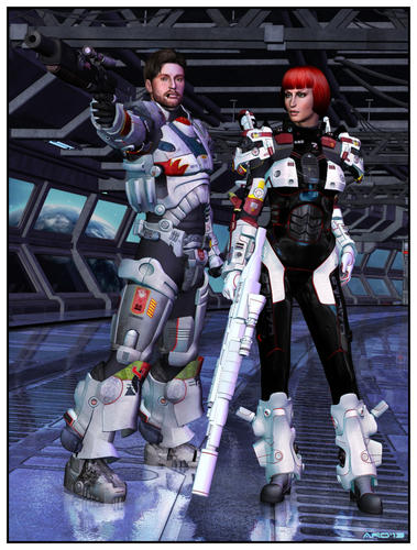 The girl is a custom character using Genesis 2 Female and the V6 Anna skin, the male is Neo for Genesis which was bundled with David 5 (and has become my favourite male texture set to date). I used the Advanced Ambient light almost exclusively for the renders.
