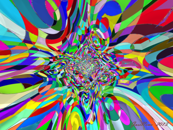 If you like to paint by numbers, the third image is for you. This image really looks like an abstract painting, in that the colors are wild and you have to use your imagination to find any meaningful images.