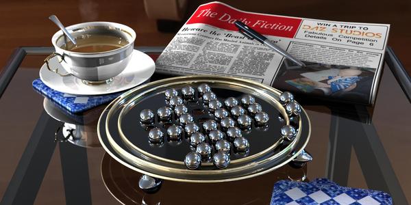 The cup, saucer and spoon and the newspaper objects are from Archive3D.