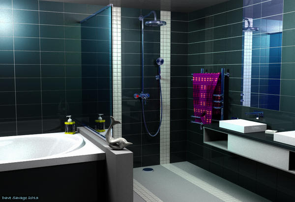 I've tweaked a few things (oy! stop making your own dirty jokes up!) and re-rendered the scene without Vicky as the Illustration I was originally trying to achieve was a simple scene to show the wetroom off (not with the distraction of a semi naked woman).