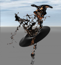I'm not happy with it yet. A large amount of the coffee is black rather than coffee colored, including a lot of the smaller droplets that should be lighter colored. I haven't been able to get it close to the reference picture in the first post.