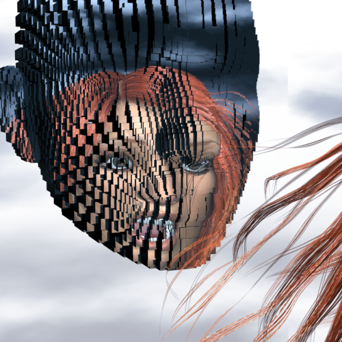 Spend a little more setting this one up. As usual i started with cutting Genesis up, i only kept the face, front torso, arms and part of the upper legs and then qRemeshed in ZBrush to distribute the vertices (note to self : use a bodysuit next time instead of genesis, much easier). I moved that mesh a bit in front of genesis and populated it with the glass shards that i made for ShardMan (a few posts back).