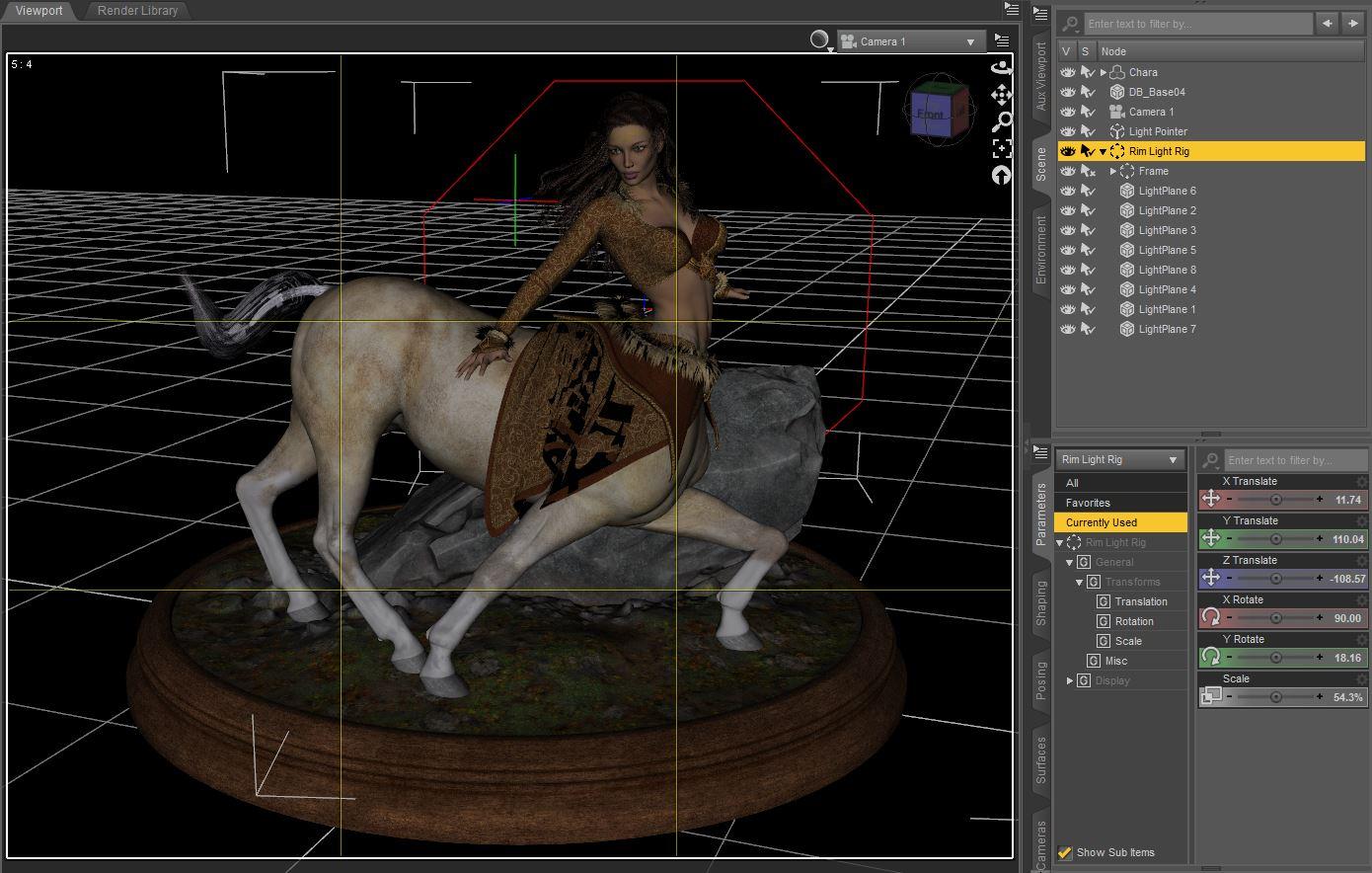Hi dawnblade. Thanks for posting. That new Bases Pack looks very interesting for smaller figure based scenes so I'm glad to see your render here with the Rim Light Rig. I'm curious about the light planes showing as they are supposed to be invisible. I have noticed there can be a very faint artifact when using some extreme DOF, is that how they showed up in your render? Otherwise, you shouldn't have to hide them.