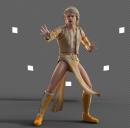 Still working with the Rim Light Rig Set. In this first screen shot, the figure is posed and both a Spotlight Rig and a Plane Rig are present. It's back in Texture Shaded mode. The Spotlights show, but they don't once the scene is rendered. In the second screen shot, the Plane artifacts show in the render.