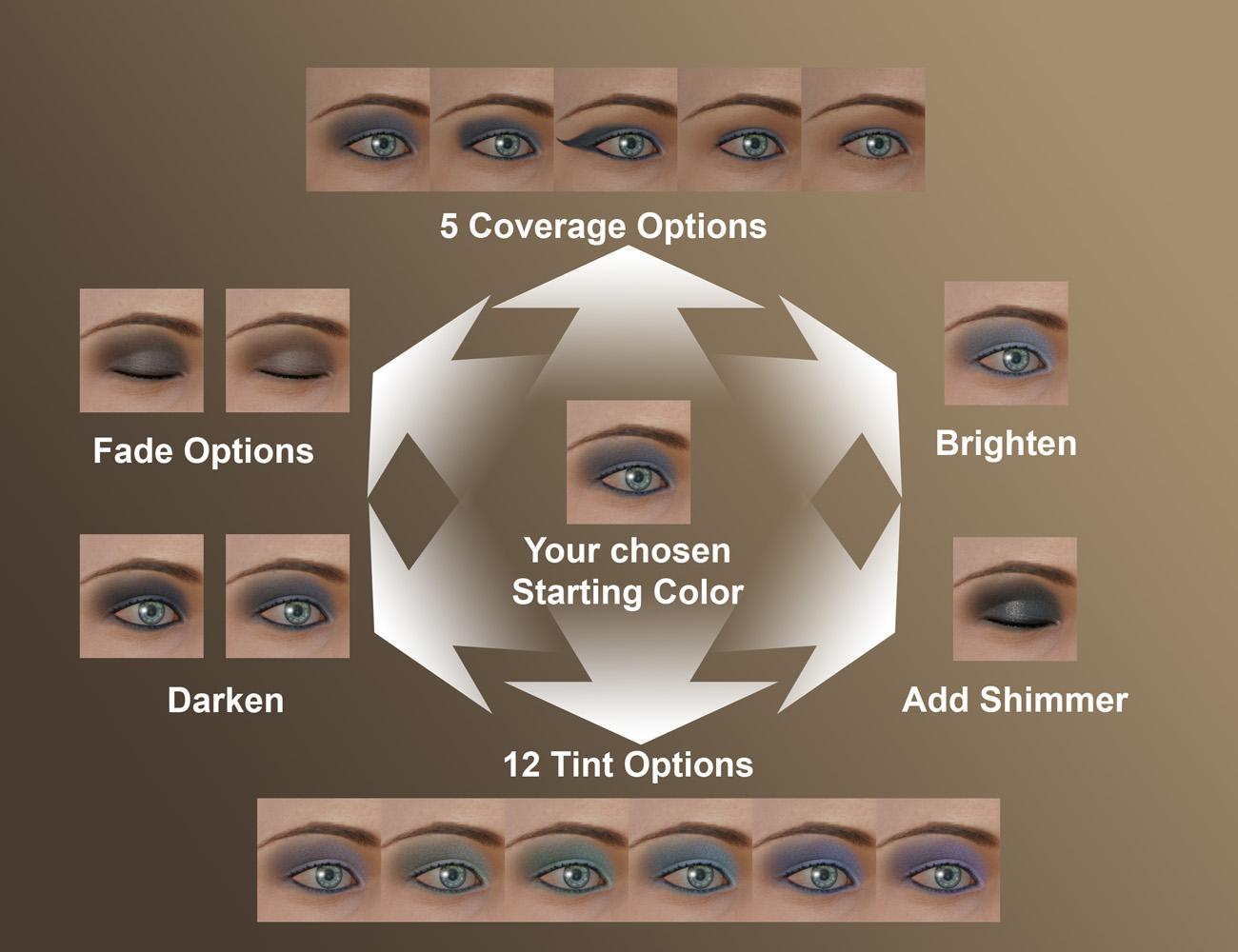 For the Fantasy, Tribal and Sci-Fi Make-up sets, they all come with "Designs" and "Colors". The Designs are complete presets so they should work just by applying them. The Color presets can be used to change the colors but not the designs, giving you more flexibility. Although they are sold in sets, you can use any of the color presets to change colors, so for example if you like a particular Tribal design, you can still apply a Sci-Fi or Fantasy color preset. Some will admitedly not look as good as others, but it is a very flexible system. There are also utilities to brighten and darken the make-up, add a metal effect, change the lips and to fade the make-up for more subtle effects.