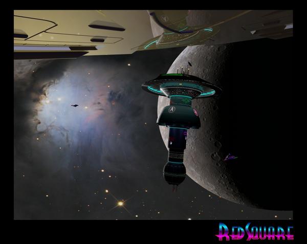 @ Safeunderdark If you mean the one in the far distance, then no it's not part of the background it's a model/object which I downloaded off of the web, if memory serves me correctly . The only things not objects are the picture of the stars and the moon/planet which I dropped in when I prepared the .jpg. The four ships are all models. ;-)
