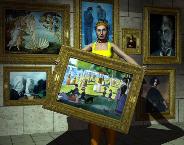 Best three entries in the REAL PETS MINI CONTEST get a zip with my first freebie, "Swell Paintings", good for DAZ and Poser. "Not tested on a Mac", whatever that is.