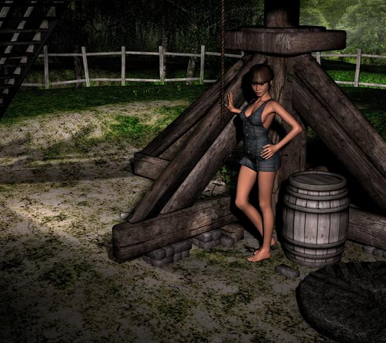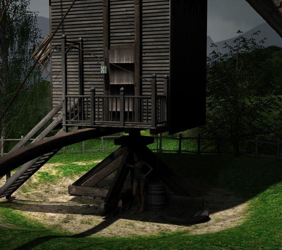 Here's one with all the lights that I added (about three spotlights, one distant light) turned OFF for the underneath side where Cassidy is. Then with them turned on. Wanted to test what light was necessary if you want to include details under the windmill. They are definitely needed, lol.